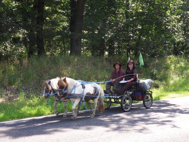 Schnelle Reiter sitzen schon dort, entschleunigte Reiter treffen ein, zu guter Letzt das zauberhafte Gespann: zwei reizende Shettie-Jungs, kleine Hufe, großes Herz und der Klang der Glöckchen am Geschirr harmoniert mit dem glockenhellen Gelächter der beiden Kutscherinnen Maren und Christa. Zwei Shetlandponys können durchaus Fahrtwind erzeugen, man sieht’s an dem flatternden VFD-Fähnchen.