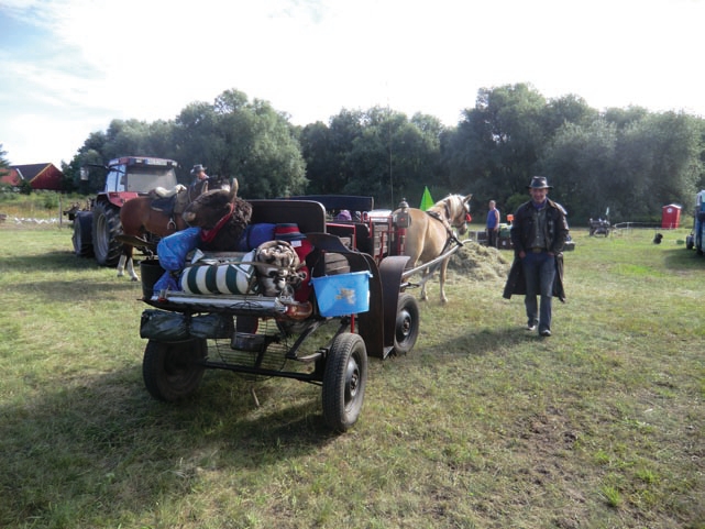 Mittlerweile ist es heiß im Havelland, es geht auf die 30°-Marke zu. Aber die gute Picknick-Versorgung mit Obst, kühlen Getränken, Milchreis und anderem sorgen vor gegen Dehydrierung und Energieverlust. Wasser und üppig stehendes Gras für die Pferde! Auch an diesem Tag kommen alle Huftiere und Zweibeiner gut an. Die Pferde machen zur Halbzeit durch die Bank einen frischen und zufriedenen Eindruck. Das sollte sich übrigens auch in der zweiten Hälfte nicht ändern. Wir konnten mal wieder erleben, dass die Steppennomaden, aus denen unsere Reitpferde, Ponies, Warmblüter, Quarter, Anglo- Shagyaoder reine Araber, sogar ein Kaltblut gezogen sind, dazu geschaffen wurden, 30 oder 40 Kilometer am Tag zurück zu legen.