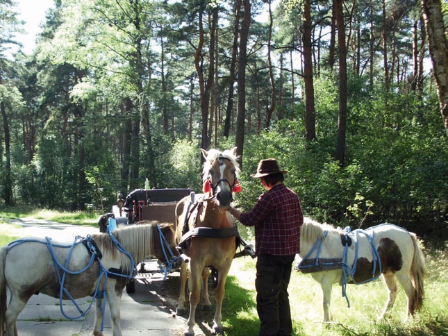 Am nächsten Morgen, Freitag, geht es weiter, weiter und wir reiten bis zum Horizont, ja ja wir reiten! Trotz nächtlichen Wetterleuchtens bleibt es heute noch sonnig. Das stört uns nicht auf den wunderschönen beschatteten Waldwegen, durch Mischwald aus Kiefern, Eichen, einigen Buchen, vorbei am Moor (der einstige Weg durch den Sumpf, den wir vor zwei Jahren reiten konnten, ist inzwischen untergegangen).