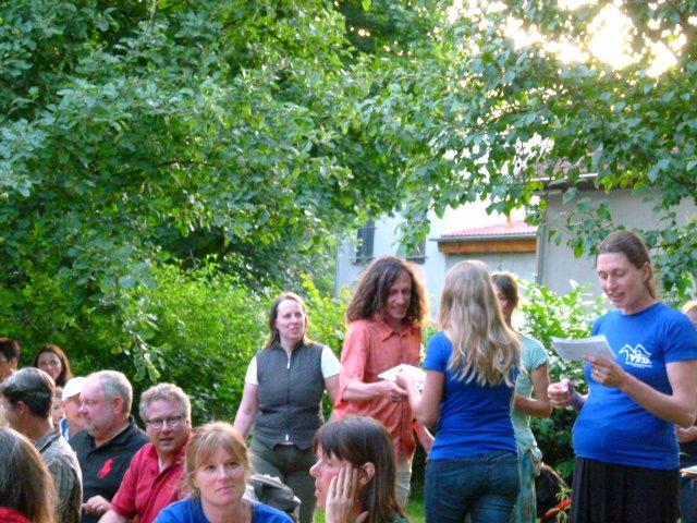Die erste Vorsitzende, Nina Binder, hielt eine kurze Ansprache, das Buffet ( vom Veranstaltungsservice Simone Reichel, echt super) wurde eröffnet. Unter fröhlicher Anteilnahme des natürlich fachkundigen Publikums wurden Reiter geehrt, wie etwa der 75-jährige Christof und der jüngere Christoph, der 2002 als absolutes Greenhorn angefangen hatte und bis heute mit ein und demselben Pferd absolviert hat.