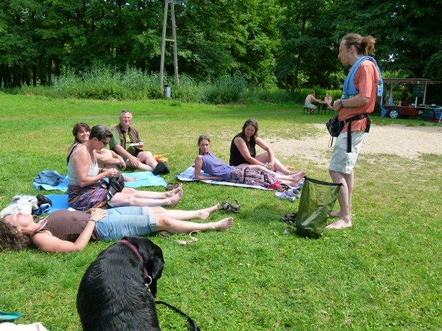 Weil das Wetter so einladend war, und die letzte Duschgelegenheit schon ein oder zwei Tage her, fand mein Vorschlag, zum Schwimmen an den Seddiner See zu fahren bei einigen begeisterte Aufnahme. Und weil einige keinen Badeanzug dabei hatten, badeten wir solidarisch alle textilfrei. Chérie konnte es gar nicht abwarten, ihren schwarzen Pelz kühlen zu können.
