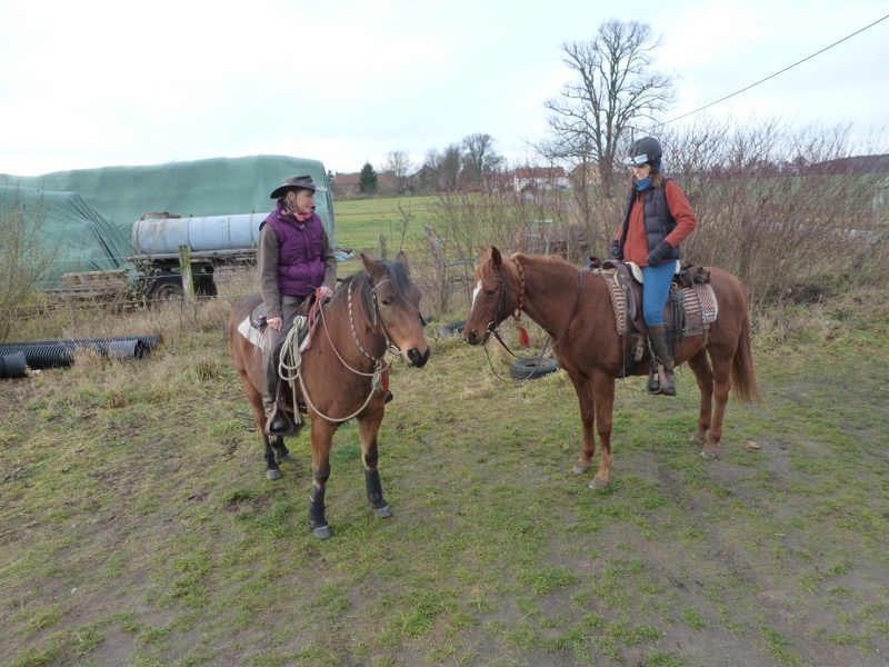Kurz vor Weihnachten nutzten die Langerwischer Reiterinnen das sonnige Sonntagswetter für einen schönen Rundritt um die Saarmunder Berge. Der Boden war locker und federnd, von Frost keine Spur. Der Rückweg führte durch die Fresdorfer Heide, die in weiten Teilen immer noch ein gutes Ausreitgelände für Reiter aus Tremsdorf, Michendorf, Nuthetal und Wildenbruch darstellt, obwohl sich in ihrer Mitte ein ca. 40 Hektar großer Kiestagebau befindet. Nebendran liegt eine aufgeforstete Anlage mit entsorgtem Bauschutt, und damit ein nahezu ebenso großes Areal, das auch für Reiter unzugänglich ist. Nun sollen eine Abfall-Sortieranlage und eine weitere Deponie hinzukommen.