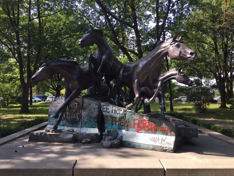 Die jüngste Pferde-Monumentalskulptur stammt aus 1998 und heißt: Der Tag, an dem die Mauer fiel. Sie zeigt fünf wilde Pferde, die Reste der gefallenen Mauer überspringen. Die Pferde stehen vor dem Alliiertenmuseum in der Clayallee in Berlin-Zehlendorf.