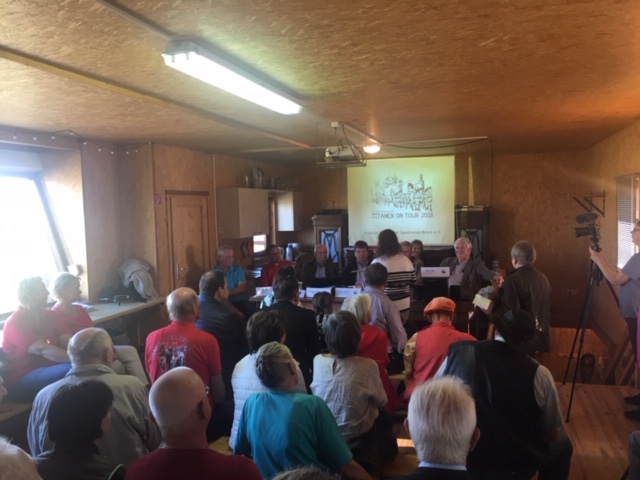 Gretel und Achim Rensch werden nach der Rückkehr aus Weliki Nowgorod von rbb-Moderator Attila Weidemann für die Abendschau interviewt. Ihre Mulis haben den Trek gut überstanden. Die Pferde, welche die Planwagen und Kutschen gezogen hatten, erholen sich nun auf heimischen Weiden in Brandenburg.