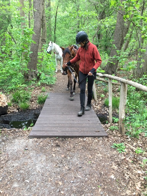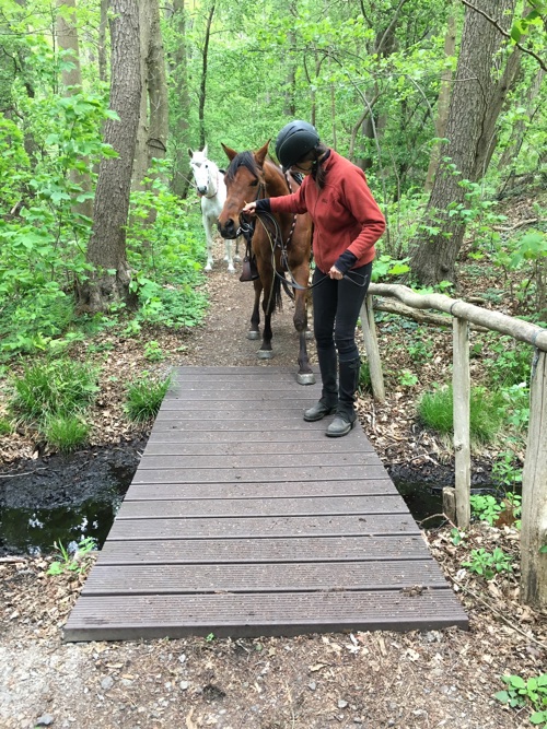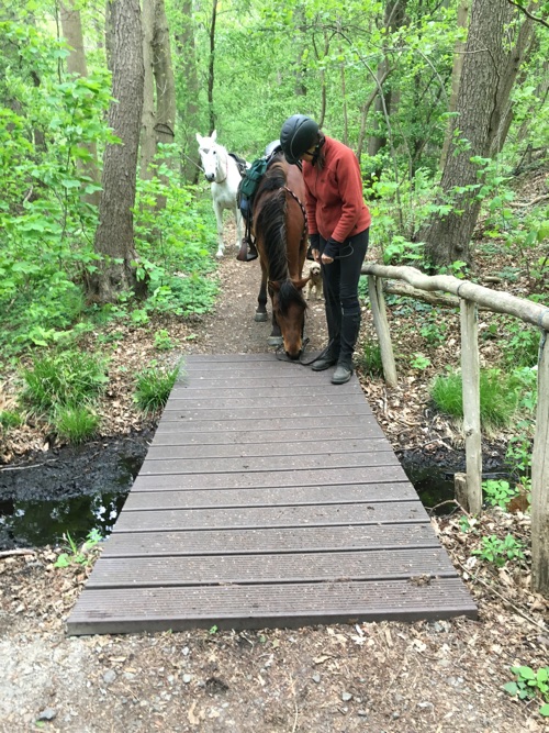 In Ergänzung des unbedingt lesenswerten Artikels von Peter van der Gugten auf Seite 21 des Juni-Heftes – der Pflichtlektüre für jeden Rittführer und Reiter sein sollte – erscheinen hier noch weitere Bilder zum vorsichtigen Herantasten an eine rutschige Holzbrücke. Nach Inspektion des Baches, der sich als tief und sumpfig herausstellte, wurde beschlossen, der Brücke den Vorzug zu geben. Wie der Autor betont, sollte sie zügig überschritten werden. Auch hier gilt: wer in guten Zeiten öfter mal freiwillig übt, kann im Ernstfall solch eine Hürde schaffen. (Text und Fotos: Nina Binder; im Bild: Birgit Groth und Anwar