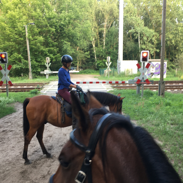 Es empfiehlt sich, Pferde mit Eisenbahnen vertraut zu machen, gibt es doch kaum Gebiete, die nicht von Bahnlinien durchzogen sind. Seien es pfeifende Lokomotiven, Schnellzüge mit enormer Luftverdrängung oder lärmende Güterzüge, neben dem Reitweg oder über einer Unterführung, die man gerade durchreitet: coole, abgehärtete bzw. verkehrstaugliche Pferde sind eine echte Lebensversicherung. Dies alles kann man bei den erfahrenen VFD-Ausbilderinnen in Brandenburg lernen.