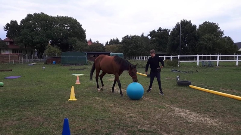 Wenn man die Regeln beachtet… ist das Training mit positiver Verstärkung einfach genial! Ich habe es genutzt, um mit Emile auf instabilen Untergründen wie Matten und Wippen zu trainieren. Inzwischen wagen wir uns auch an gymnastizierende Zirkuslektionen, Freiarbeit und an die Arbeit an der Hand. Alles unter der Prämisse: Alles kann sein – nichts muss sein! Gepaart mit Equikinetik und einem Ausdauertraining im Gelände unter dem Reiter und vor dem Sulky haben sich die Balance und die Rittigkeit von Emile deutlich verbessert.