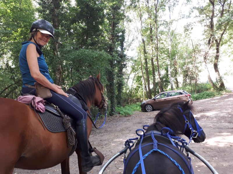 Und weil man ja nicht nur die Hunde ausführen will, sondern auch die Pferde bewegen möchte, wird eine Runde zu Pferde und auf dem Kutschbock draus.