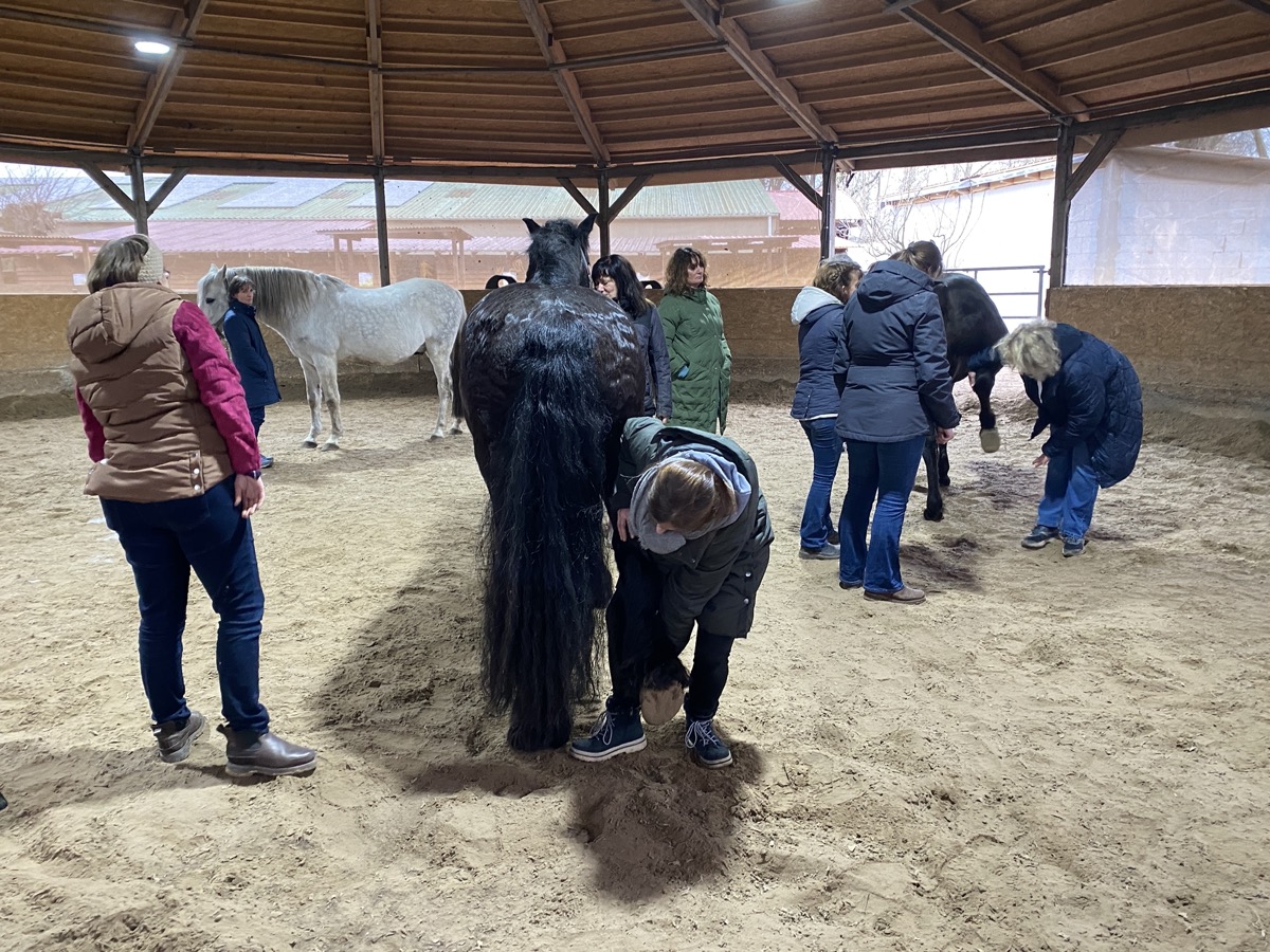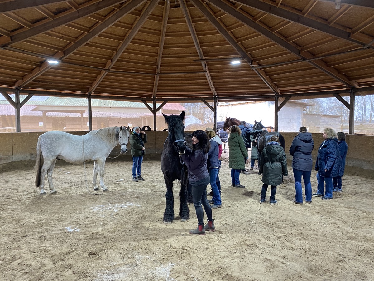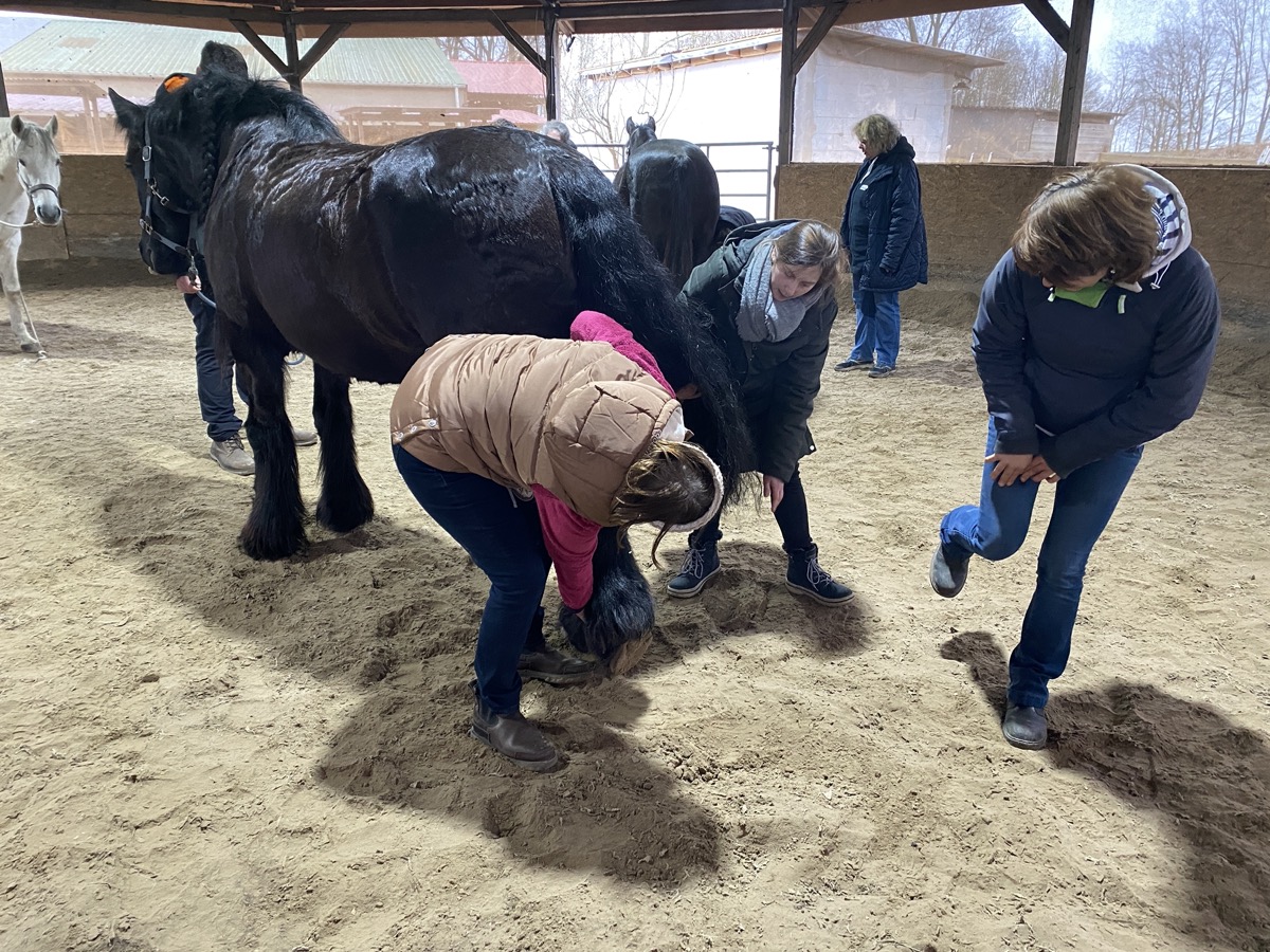 Vom Huf über Gliedmaßen zu Muskelgruppen und Faszien gab es dann auch im praktischen Teil des Seminars viel auszuprobieren.