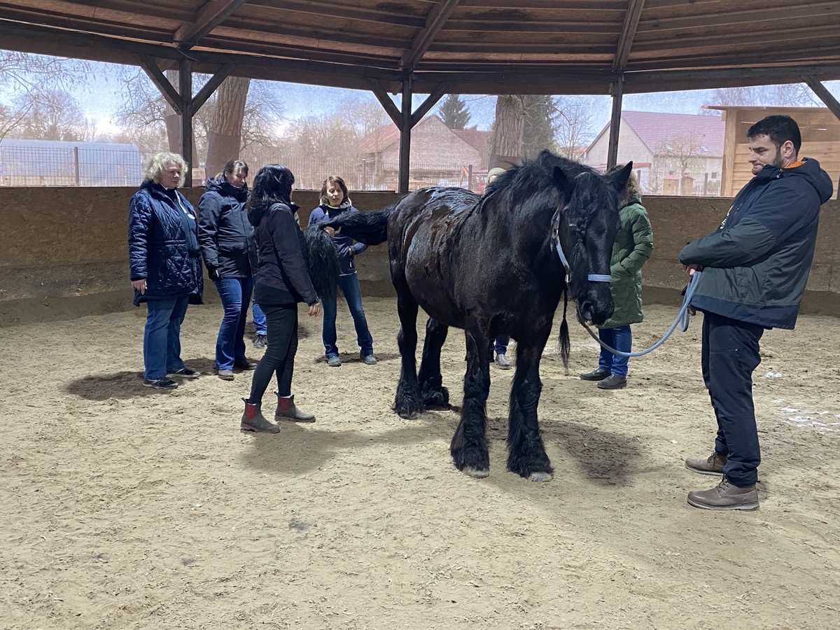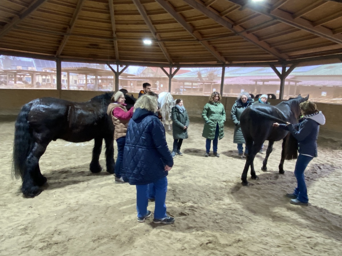 Unter anderem wurden unter Anleitung Massagen, Dehnübungen und das lockern von Faszien an den geduldigen vierhufigen Probanten ausprobiert und geübt. Alles in Allem war es ein sehr interessantes und spannendes Seminar. Ein herzliches Dankeschön für den tollen Tag gilt den zweibeinigen Dozenten und ihren vierbeinigen Helfern.