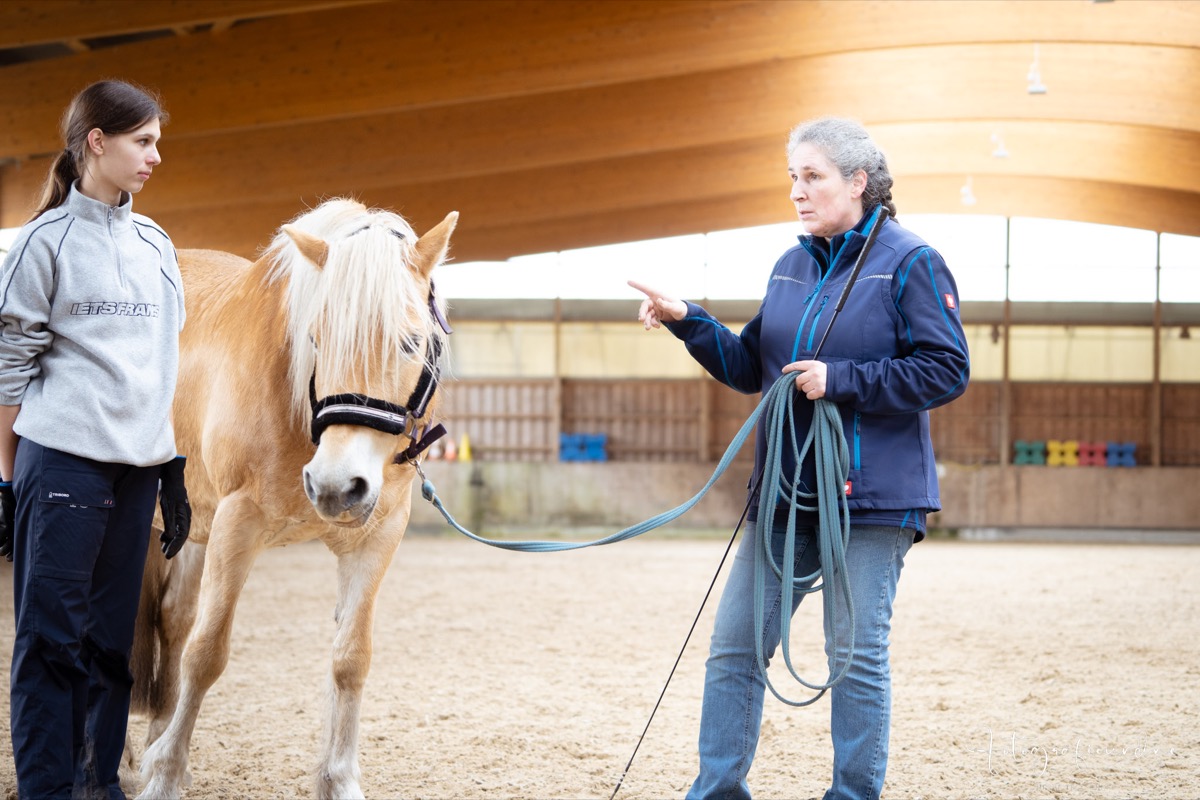 In der Theorie griff Katharina die wichtigsten Dinge auf und ging auf Fragen und Anliegen gerne ein. Sie ging stets respektvoll aber bestimmt mit Mensch und Pferd um. Bei der darauffolgenden Praxis wurde jeder individuell betreut und vom aktuellen Stand abgeholt.