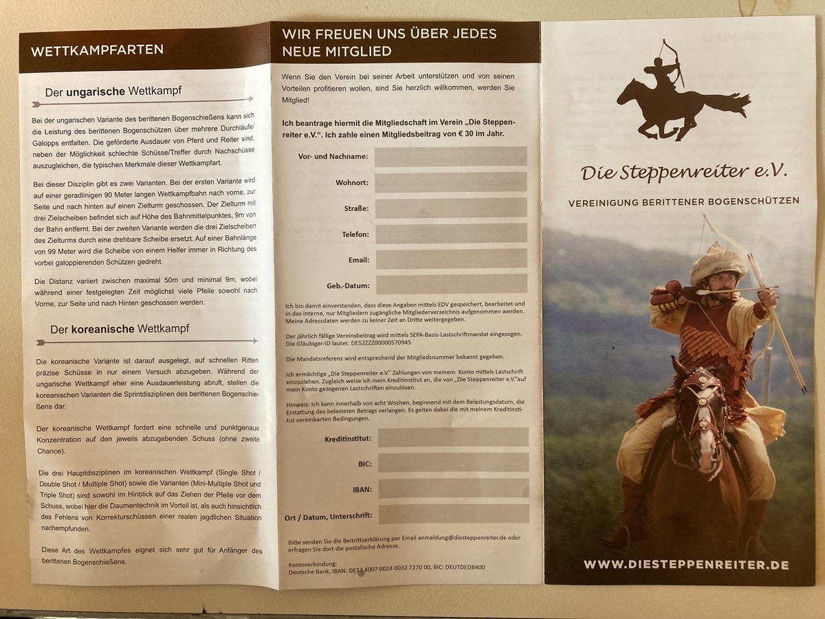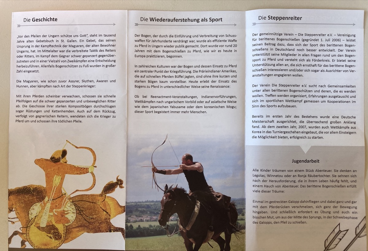 Auf dieser Webseite ist mehr über das komplexe Thema zu erfahren: http://wanderreiten-sachsen.com/bogenschiessen/