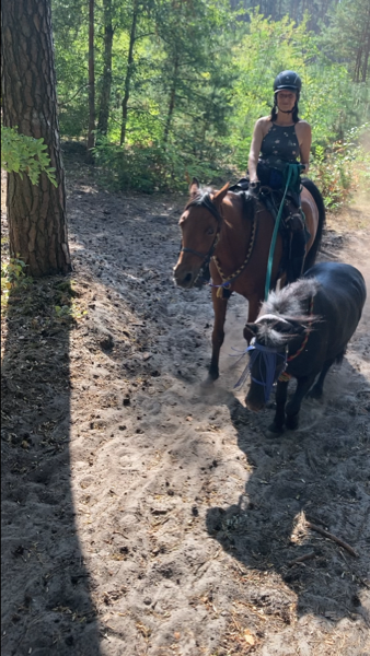 Am Samstag fand der traditionelle Schünow-Trail statt. Wir ritten eine Strecke von 14 km und mussten kniffelige und lustige Aufgaben lösen: zunächst wurden vom Pferd aus kleine Becher mittels einer Gießkanne mit Wasser befüllt, bis die Badeenten schwimmen konnten; sodann hieß es, einen Seilzug betätigen, bis ein Tablett in erreichbare Nähe rückte, um die darauf befindlichen Leckerlis dem Pferd zu verfüttern.