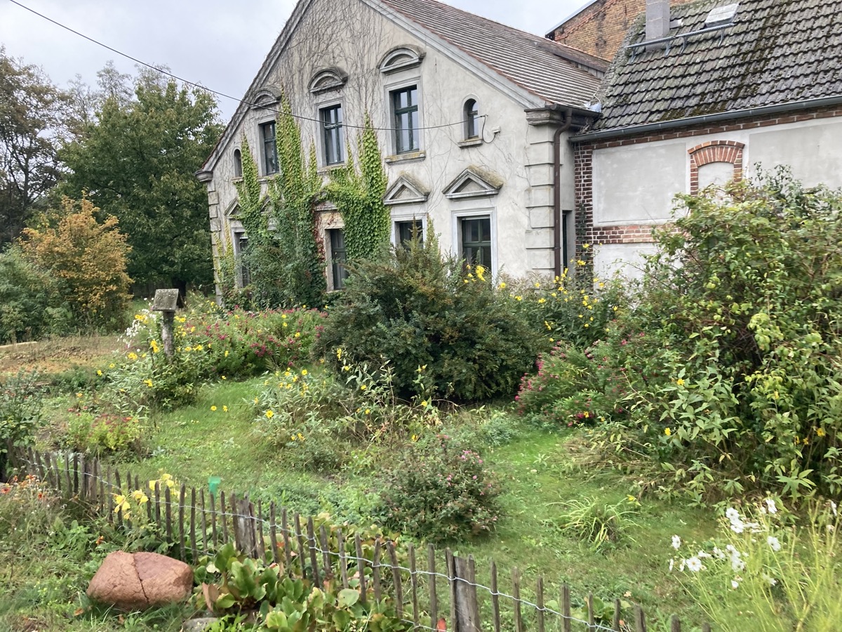 Auch der Wallach wurde gesattelt, und so startete man in die erste Tagesstrecke entlang der Plane über den kleinen Ort Schlalach durch die Spargelfelder bis nach Jeserig. Die Fahrerin hatte ausführliche Recherche nach Wanderreitstationen betrieben, und so konnten die Tagesetappen je nach Wetterlage verlängert oder verkürzt werden.