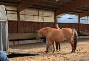 Am Sonntag durften die Pferde vom Samstag morgens vor Kursbeginn noch einmal kurz auf den Hänger gehen und dort eine gute Erfahrung machen. Und hier zeigte sich richtig deutlich, was die Konsequenz und ein guter Zeitpunkt für das Ende am Samstag sowie die Nacht-Pause an Fortschritt bringen: alle Pferde gingen ohne viel Diskussion innerhalb weniger Minuten auf den Hänger.